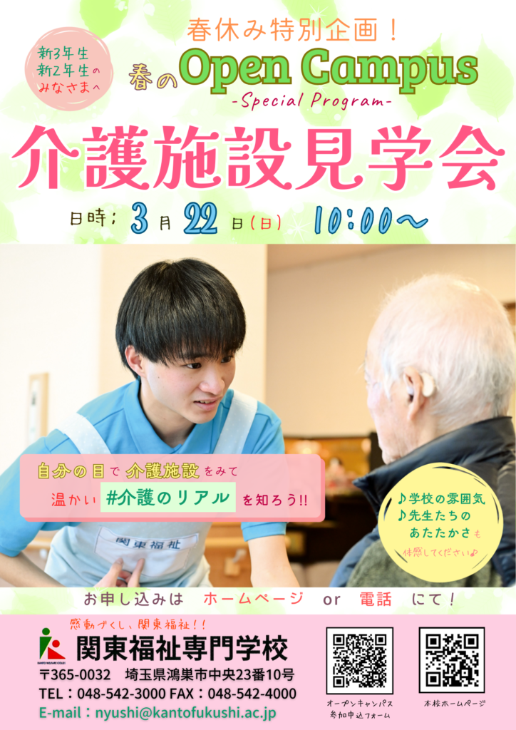 春のオープンキャンパス 【介護施設見学会】 開催のお知らせ